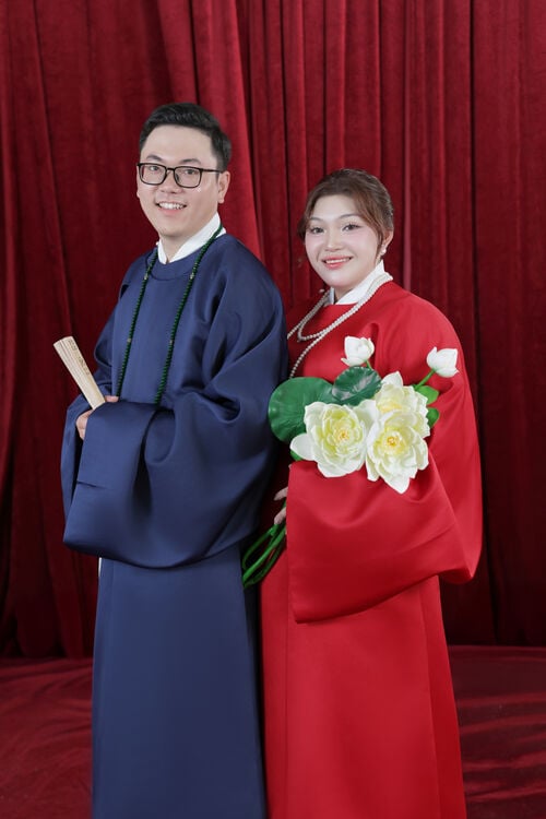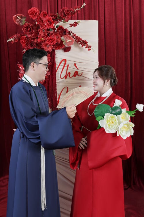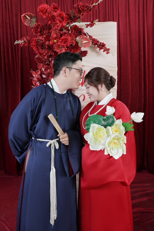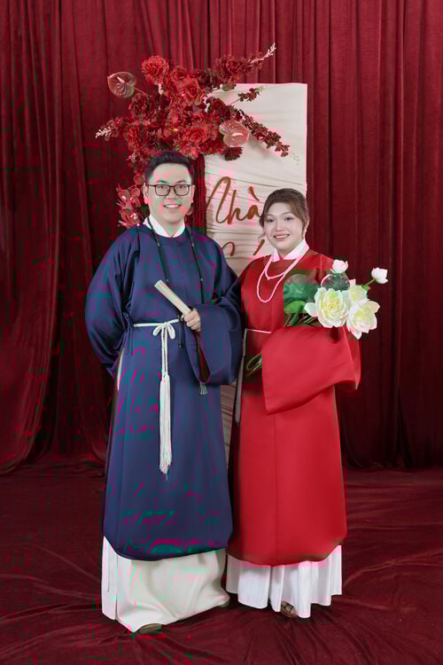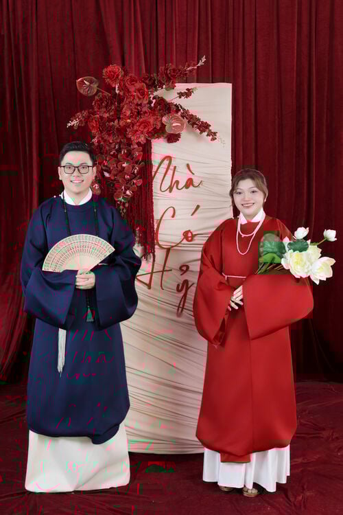 “Chúng mình gặp nhau khi còn là những cô cậu học sinh cấp 3. Tình yêu trong veo của tuổi học trò bắt đầu từ những điều rất giản dị. 9 năm bên nhau không chỉ là hành trình của tình yêu, mà còn là hành trình của sự trưởng thành và thấu hiểu. Chúng mình đã cùng nhau đi qua nhiều cột mốc quan trọng trong cuộc đời với đủ cung bậc cảm xúc – có niềm vui, có nỗi buồn, có những nụ cười và cả những giọt nước mắt. Và hôm nay, từ tình yêu của những năm tháng thanh xuân ấy, chúng mình quyết định nắm tay nhau bước sang một chặng đường mới – chặng đường của hôn nhân, của gia đình và của cả một đời bên nhau.”